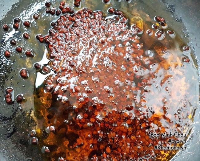 - Trong khi chờ ướp sườn thì cho vào chảo 3 muỗng canh dầu ăn, 1 thìa canh hạt điều để tạo màu.