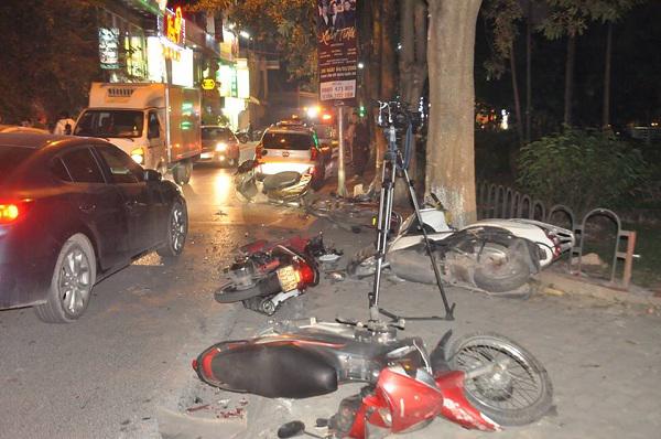 Được biết, chiếc xe mang nhãn hiệu Lexus, BKS 29A.XXX do một người phụ nữ khoảng ngoài 30 tuổi điều khiến đã gây ra vụ tai nạn. Ghi nhận tại hiện trường khi xảy ra vụ tai nạn cho thấy, có ít nhất 7 chiếc xe máy bị hư hỏng khi bị xe ô tô Lexus đâm phải; 1 xe taxi và 1 xe ô tô chuyên dụng của CSGT bị đâm hư hỏng phần hông, đầu xe.